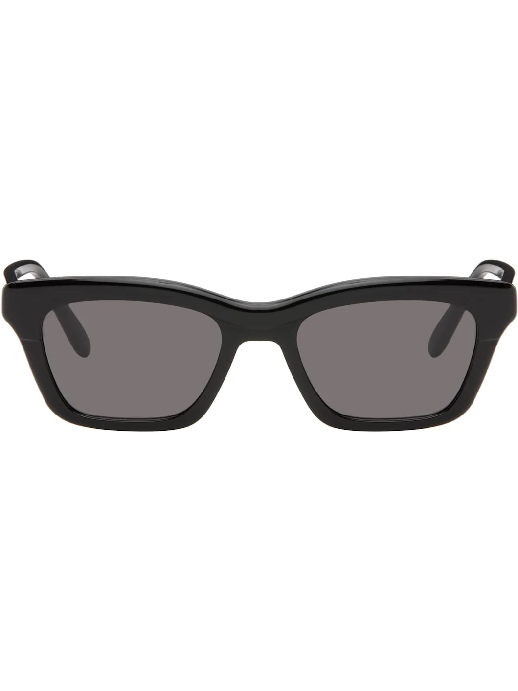 Rectangular cat-eye acetate-frame sunglasses. · Black lenses · Integrated nose pads · Logo hardware at temples · Leather pouch included · Size: 53.18 140 Supplier color: Shiny Black/Smoke Acetate. Made in Italy 261677M134016