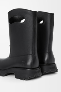 Boot in grained vegetable-tanned calfskin featuring a handle cut-out, a workwear-inspired reinforced toe, a chunky two-piece sole and a leather-covered welt. - 45mm heel - Embossed Anagram on the heel, moulded LOEWE on the sole Colour: Black Main material: Grained Vegetal Calf Weight: 1.5 kg Made in: Italy