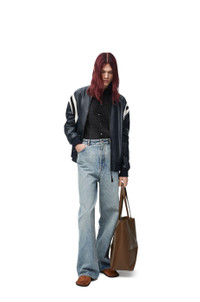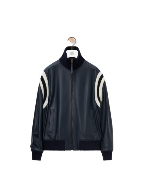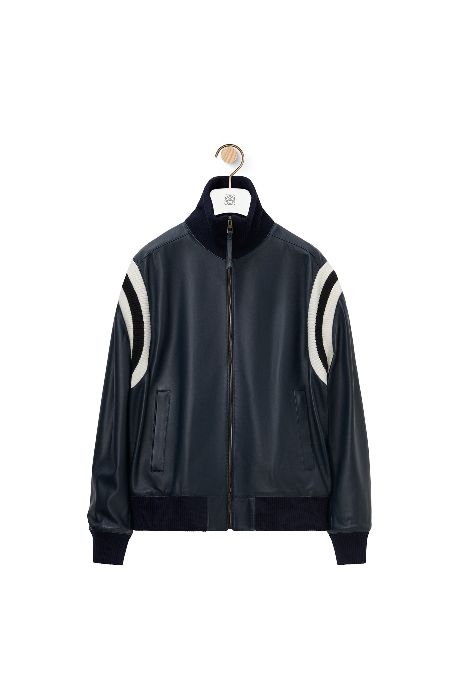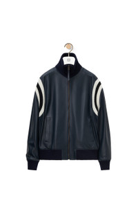 Jacket crafted in lightweight soft nappa lambskin. - Relaxed fit - Regular length - High neck - Ribbed knit collar, armholes, cuffs and hem - Varsity striped armholes - Zip front fastening - Vertical zip welt pockets - LOEWE Anagram embossed leather patch placed at the back Details - Colour: Dark Navy - Main material: Nappa - Weight: 1.1 kg - Model ID: H526Y34L20 - Made in: Italy