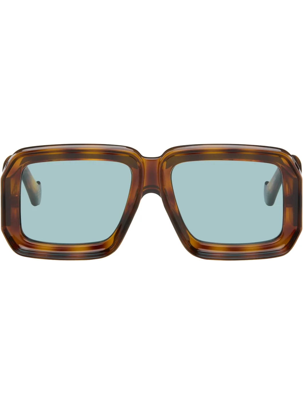 Square lightweight tortoiseshell acetate-frame sunglasses. · Inset blue-tinted lenses · UVA/UVB protection · Integrated nose pads · Logo bonded at temples and tips · Leather pouch included · Size: 56.17 145 Part of the Paula's Ibiza capsule. Supplier color: Light Havana Acetate. Made in Italy 252677M134040