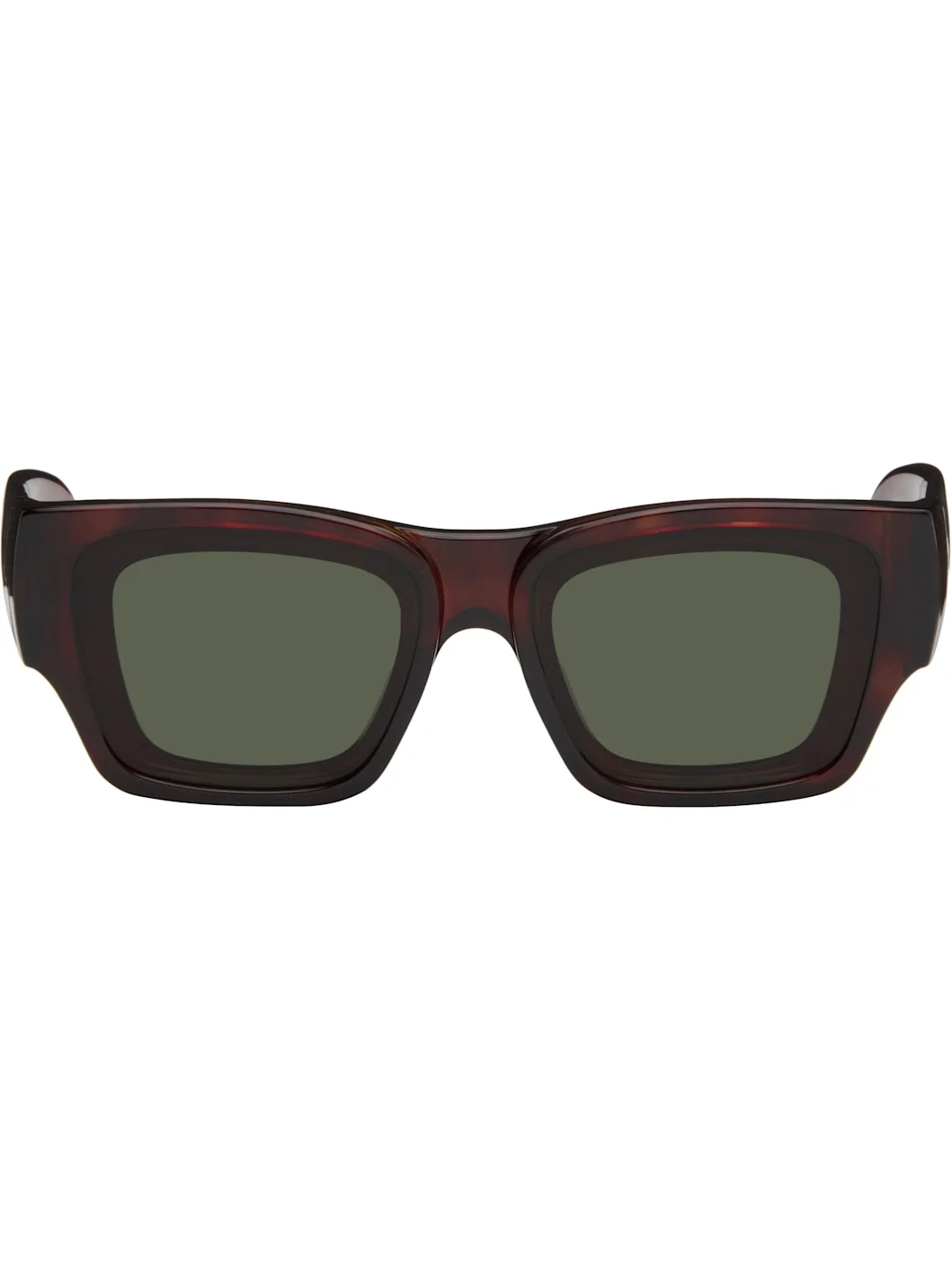 Rectangular semi-transparent tortoiseshell acetate-frame sunglasses. · Green lenses · Raised rims · Integrated nose pads · Inset logo at temples · Inset logo graphic at temple tips · Includes pouch · Size: 56.16 140 Part of the Paula's Ibiza capsule collection. Supplier color: Dark Havana/Green Acetate. Made in Italy 252677M134005