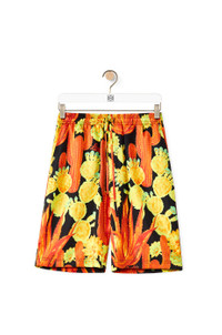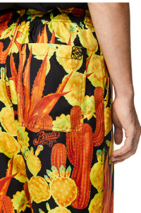 Drawstring shorts in silk with an all-over cactus and LOEWE logo print. With side pockets and a single rear patch pocket. - Embroidered Anagram - Regular fit Details - Colour: Black/Yellow - Main material: Silk - Weight : 0.12 kg - Model ID: H616Y04X47 - Made in: Poland