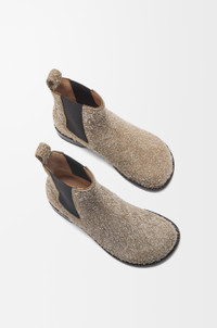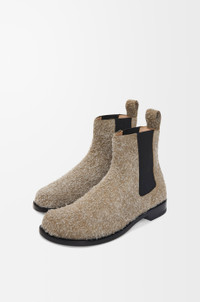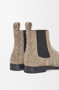 Chelsea boot crafted in brushed suede featuring an exaggerated asymmetric rounded toe. - Blake construction - Leather lining - Leather heel and sole Details - Colour: Khaki Green - Main material: Brushed Suede - Heel height: 30 - Weight: 1.4 kg - Model ID: M816285X80 - Made in: Italy
