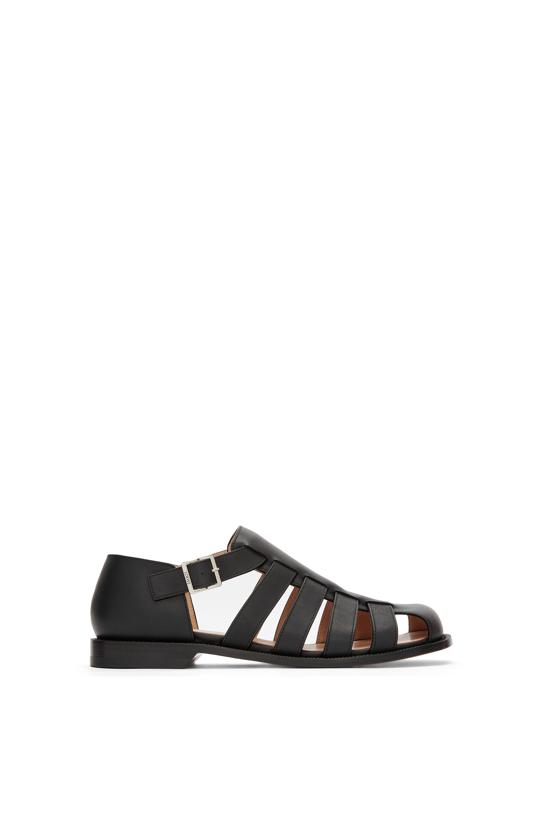 Sandal crafted in calfskin, featuring an interlaced silhouette and the LOEWE signature round toe shape. - Metal buckle closure - Leather sole and padded leather insole Details - Colour : Black - Main material : Calf - Heel height : 2 - Weight : 0.9 kg - Model ID : M816465X25 - Made in : Italy