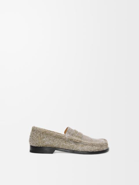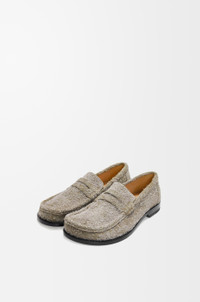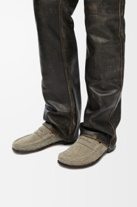 Loafer crafted in brushed suede featuring the LOEWE signature round asymmetrical toe shape. Key details include a high vamp and hand stitching. - Leather outsole and insole Details - Colour: Khaki Green - Main material: Brushed Suede - Heel height: 2 - Weight: 0.9 kg - Model ID: M816290X22 - Made in: Italy