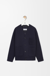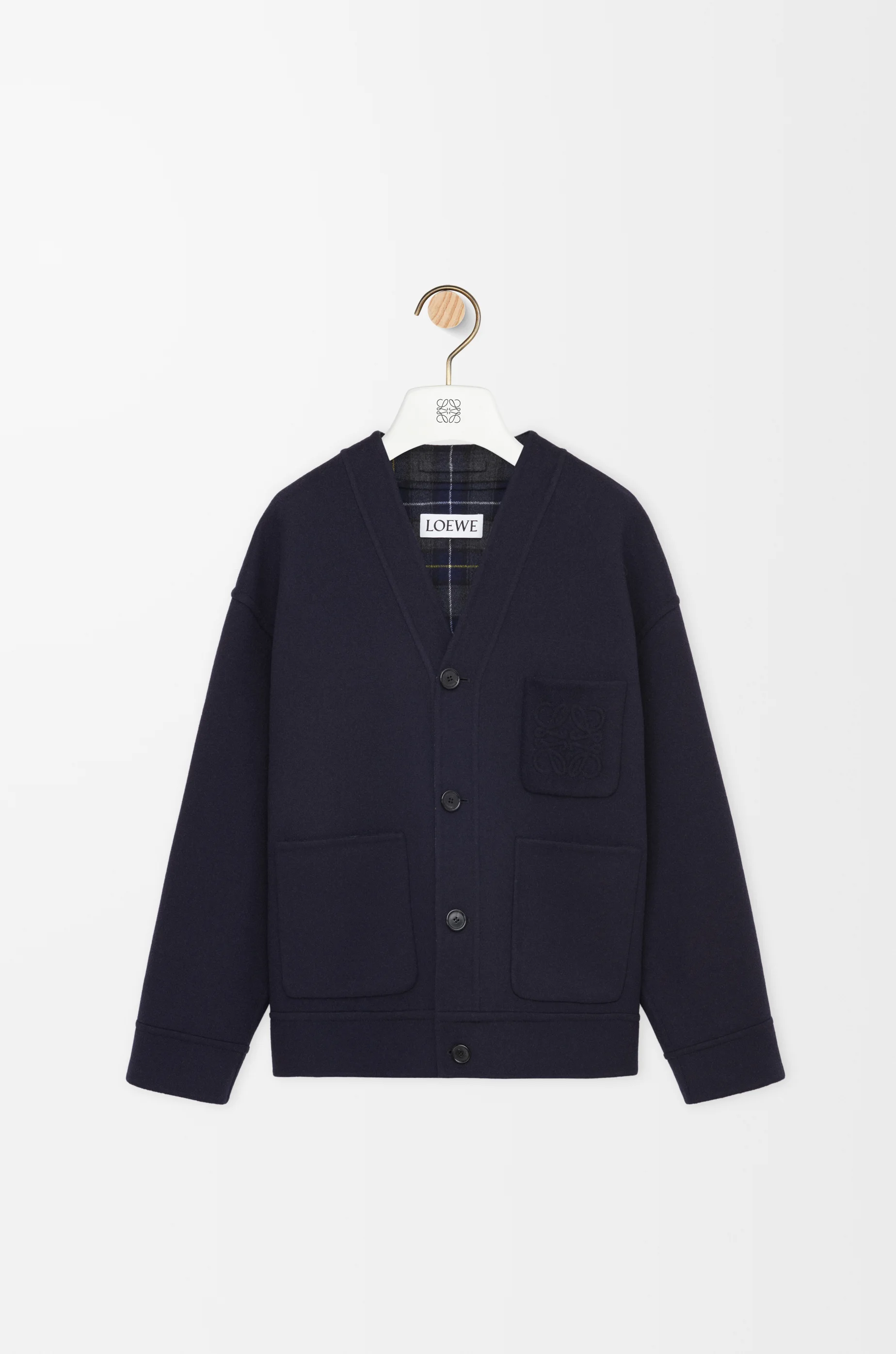 Cardigan in lightweight double face wool and cashmere featuring an exclusive check pattern on the inside. - Regular fit, regular length - V-neck - Button front fastening - Chest patch pocket, patch pockets, inside LOEWE Anagram leather patch pocket - 3D Anagram embroidery placed on the chest pocket Colour: Navy/Grey Main material: Wool/cashmere Weight: 0.74 kg Made in: Italy Materials & care Main Material: 85% wool 15% cashmere