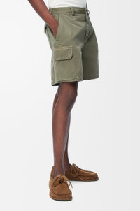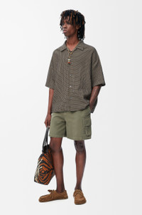 Shorts in lightweight washed cotton twill. - Regular fit, regular length - Mid waist - Concealed zip fly - Slash pockets, buttoned cargo pockets, buttoned rear flap pocket - LOEWE embossed leather patch placed at the back Colour: Sage Main material: Cotton Weight: 0.5 kg Made in: Italy