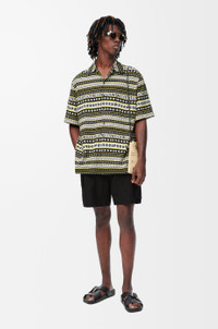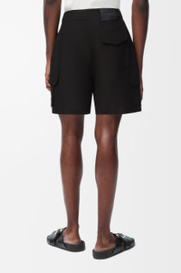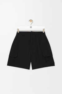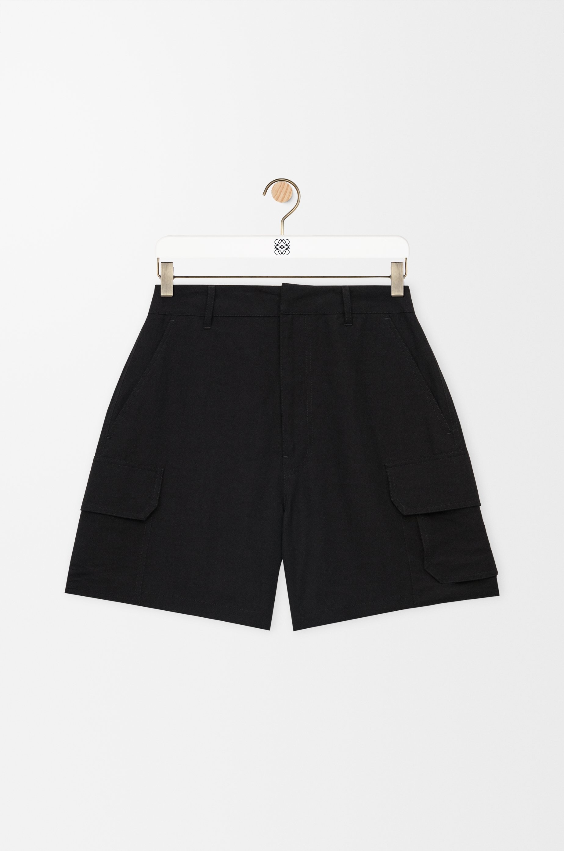 Shorts in lightweight viscose and linen toile. - Regular fit, short length - Mid waist - Concealed zip fly - Slash pockets, buttoned cargo pockets, buttoned rear flap pocket - LOEWE embossed leather patch placed at the back Colour: Black Main material: Viscose/Linen Weight: 0.4 kg Made in: Italy