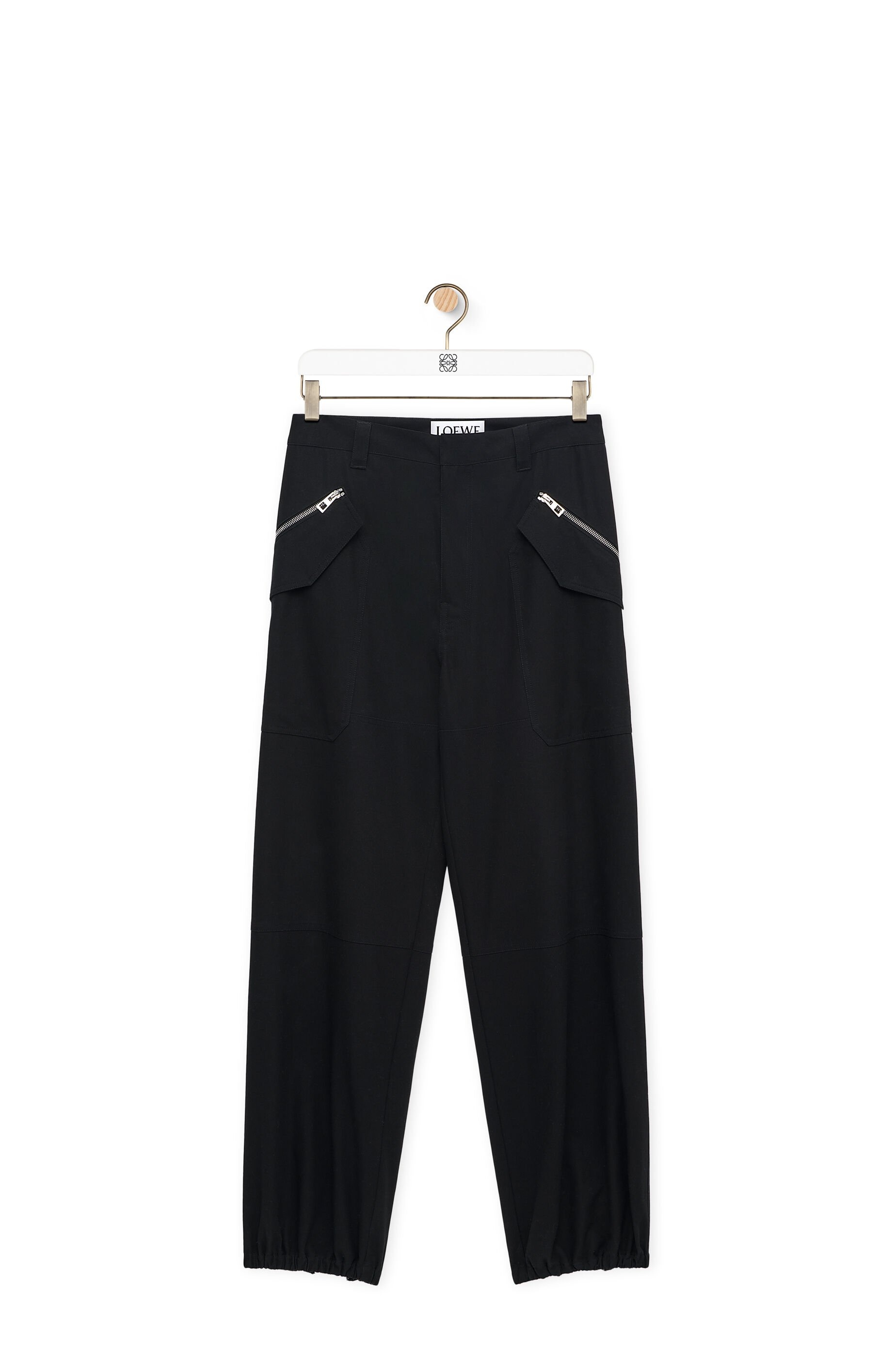 Cargo trousers crafted in medium-weight cotton gabardine. - Relaxed fit - Regular length - Mid waist - Loose leg - Belt loops - Concealed zip fastening - Zipped welt pockets - Flap pockets - Rear buttoned flap pocket - Topstitched seams on the legs - Zipped elasticated cuffs - Anagram embossed leather tab placed at the side Details - Colour: Black - Main material: Cotton - Weight: 0.8 kg - Model ID: H526Y04WE3 - Made in: Italy