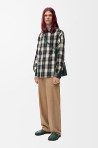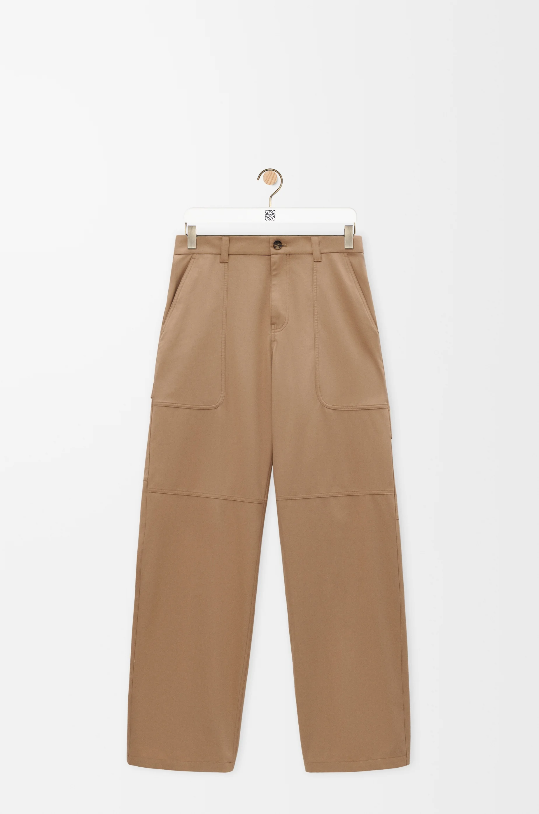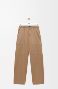 Trousers in lightweight cotton and silk blend featuring carpenter pockets at the front and buttoned cargo pockets at the rear. - Relaxed fit, regular length - Mid waist, straight leg - Concealed zip fly - Rear welt pocket - LOEWE embossed leather patch placed at the back Details - Colour : Beige - Main material : Cotton/Silk - Weight : 0.6 kg - Model ID : H526Y04WGO - Made in : Italy