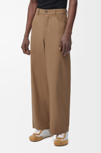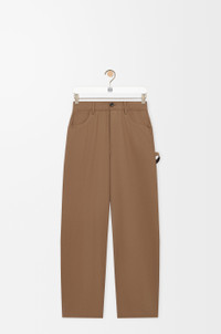 Trousers in lightweight compact cotton twill featuring a leather hammer loop. - Relaxed fit, regular length - Mid waist, curved leg - Concealed zip fly - Five pocket style - LOEWE embossed leather patch placed at the back Colour: Beige Main material: Cotton Weight: 0.5 kg Made in: Italy Materials & care Main Material: 100% cotton