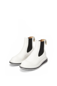Pull on Chelsea boot in calfskin with elasticated sides, contrast calfskin trim and topstitching and a LOEWE ribbon pull tab. - Leather lining and insole - Triple-layer sole with contrast topstitching Details - Colour: White - Main material: Calf - Heel height: 2.5 - Weight : 1.6 kg - Model ID: M816S05X16 - Made in: Italy