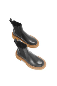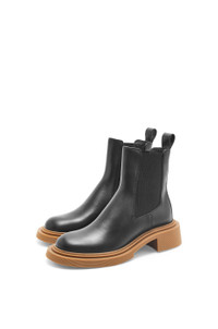 Pull on Chelsea boot in calfskin with elasticated sides, textured honey rubber sole and embossed LOEWE calfskin pull tab. - 40mm heel - Leather lining and insole Details - Colour: Black - Main material: Calf - Heel height: 5.5 - Weight: 1.8 kg - Model ID: M816S05X21 - Made in: Italy
