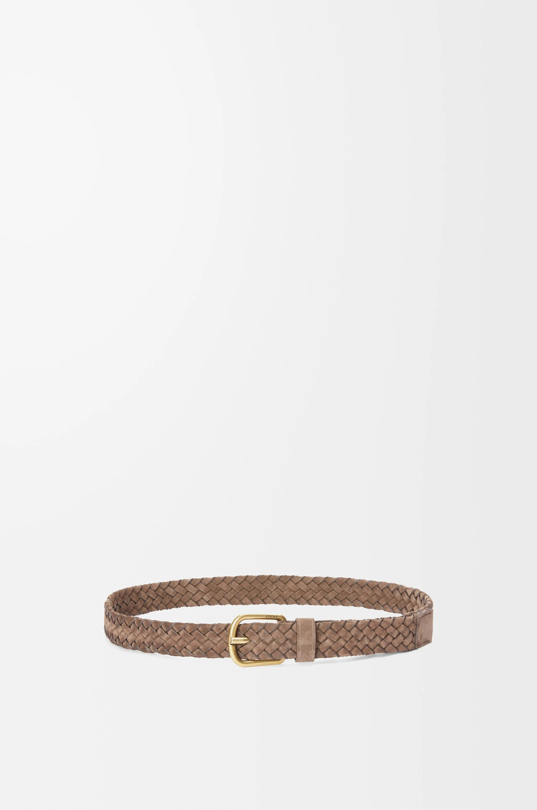 Chunky belt in woven calfskin suede with a LOEWE engraved buckle. - 3.5cm wide Details - Colour : Tobacco/Vintage Palladium - Metallic colour : Gold - Main material : Suede - Weight : 0.24 kg - Depth (cm) : 3.5 - Depth (inch) : 1.4 - Model ID : E619Z20X77 - CIL : - 0011112471 - Made in : Spain