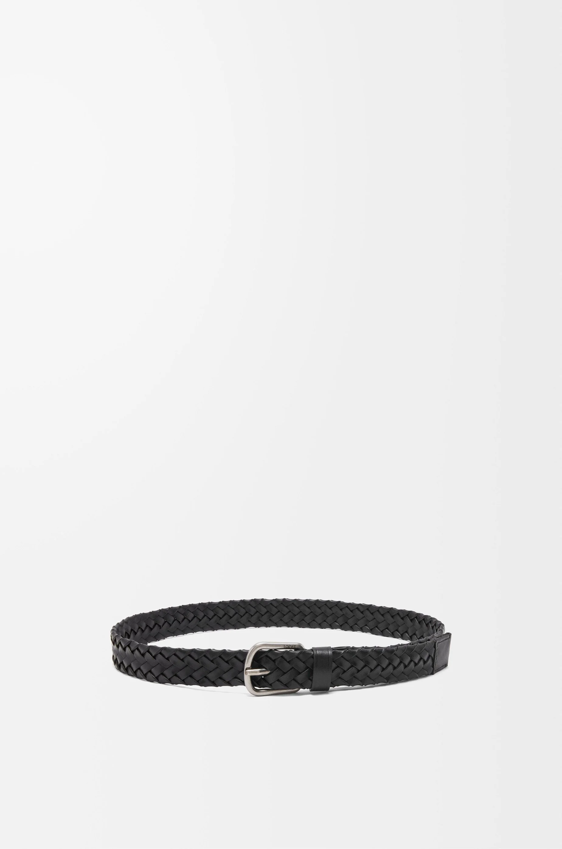 Chunky belt in woven vegetable-tanned calfskin with a LOEWE engraved buckle. - Due to its treatment, this leather will age naturally and develop a unique patina over time. - 3.5cm wide Details - Colour : Black/Vintage Palladium - Metallic colour : Palladium - Main material : Calf - Weight : 0.26 kg - Height (cm) : 0.3 - Width (cm) : 109.5 - Depth (cm) : 3.5 - Height (inch) : 0.1 - Width (inch) : 43.1 - Depth (inch) : 1.4 - Model ID : E619Z20X78 - CIL : - 0011112455 - Made in : Spain