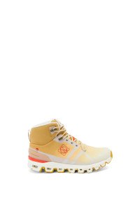 Waterproof speed hiking boot in recycled polyester canvas and recycled polyester mesh in a gradient print with an exclusive Missiongrip? marbled rubber sole. Super lightweight with a padded high collar and tongue and a Flexlock lacing system. The Cloudrock boot is breathable, with a wind and waterproof membrane and taping detail all over. - Screenprinted Anagram and On logo Details - Colour: Gradient Orange - Main material: Nylon - Heel height: 4 - Weight : 1.0 kg - Model ID: M929282X04 - Made in: Vietnam