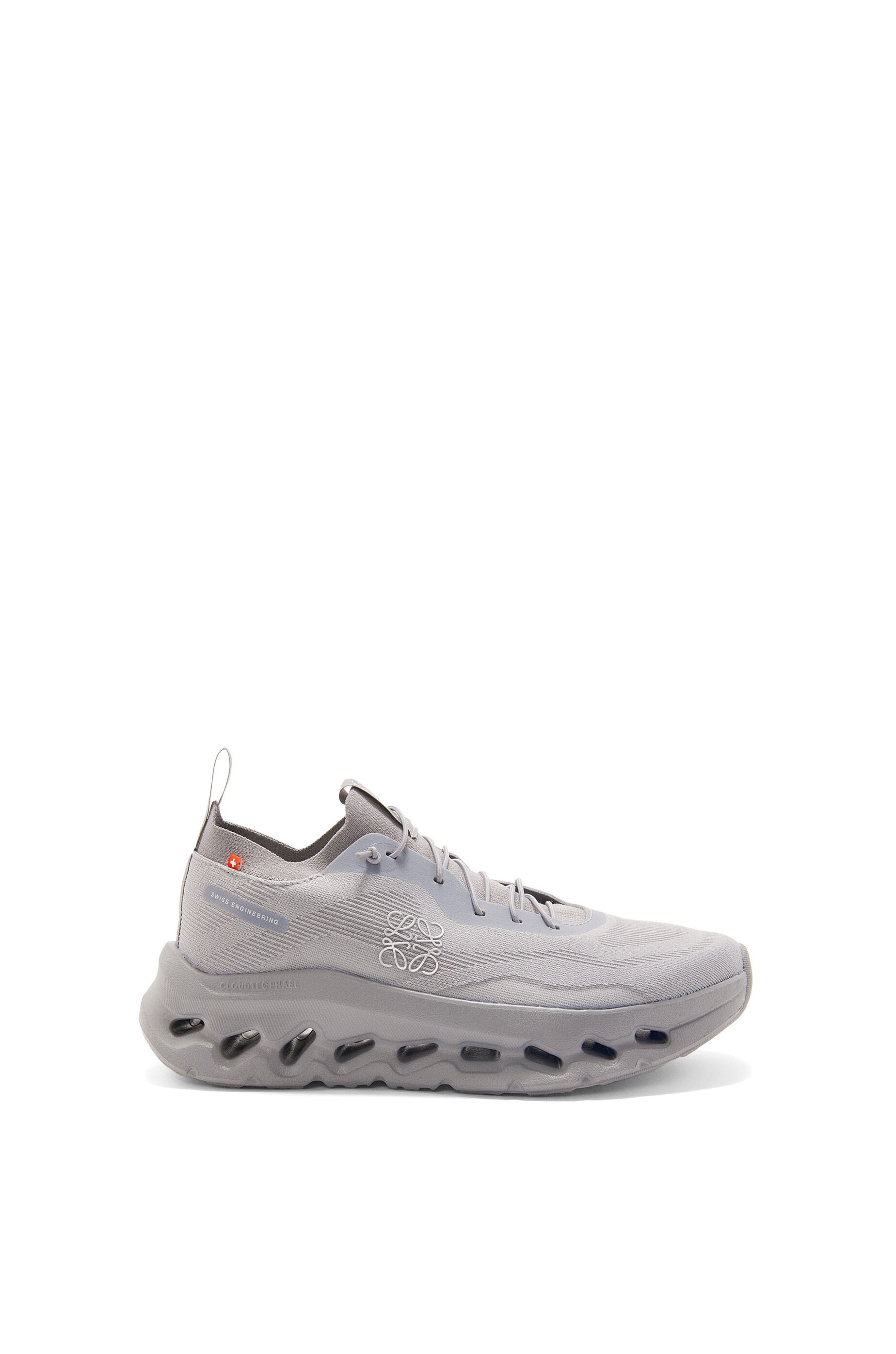 Lightweight sneaker in polyester with an engineered light foam sole and rubber pods. Characterised by a knitted mesh sock upper and speed laces for superior functionality, the Cloudtilt features the newly introduced CloudTec® Phase midsole technology for comfortable walking. - LOEWE Anagram and On logo on both sides of the shoes - Back and tongue loop for easy step in - Double laces provided - Runs small to size - if in between sizes, we suggest to order a size up. For more information, please review the size guide. Details - Colour: Slate Grey - Main material: Polyester - Weight: 0.28 kg - Model ID: M929282X15 - Made in: Vietnam