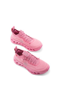 Lightweight sneaker in polyester with an engineered light foam sole and rubber pods. Characterised by a knitted mesh sock upper and speed laces for superior functionality, the Cloudtilt features the newly introduced CloudTec® Phase midsole technology for comfortable walking. - LOEWE Anagram and On logo on both sides of the shoes - Back and tongue loop for easy step in - Double laces provided - Runs small to size - if in between sizes, we suggest to order a size up. For more information, please review the size guide. Details - Colour: Wild Rose - Main material: Polyester - Weight: 0.28 kg - Model ID: M929282X15 - Made in: Vietnam