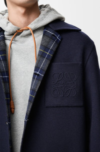 Coat in lightweight double face wool and cashmere featuring a single-breasted construction and an exclusive check pattern on the inside. - Regular fit, regular length - Classic collar - Button front fastening, buttoned cuffs - Chest patch pocket, patch pockets, inside patch pocket - Back vent - 3D Anagram embroidery placed on the chest pocket Colour: Navy/Grey Main material: Wool/cashmere Weight: 1.4 kg Made in: Italy Materials & care Main Material: 85% wool 15% cashmere
