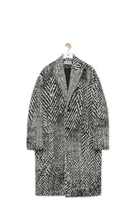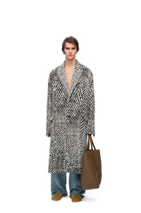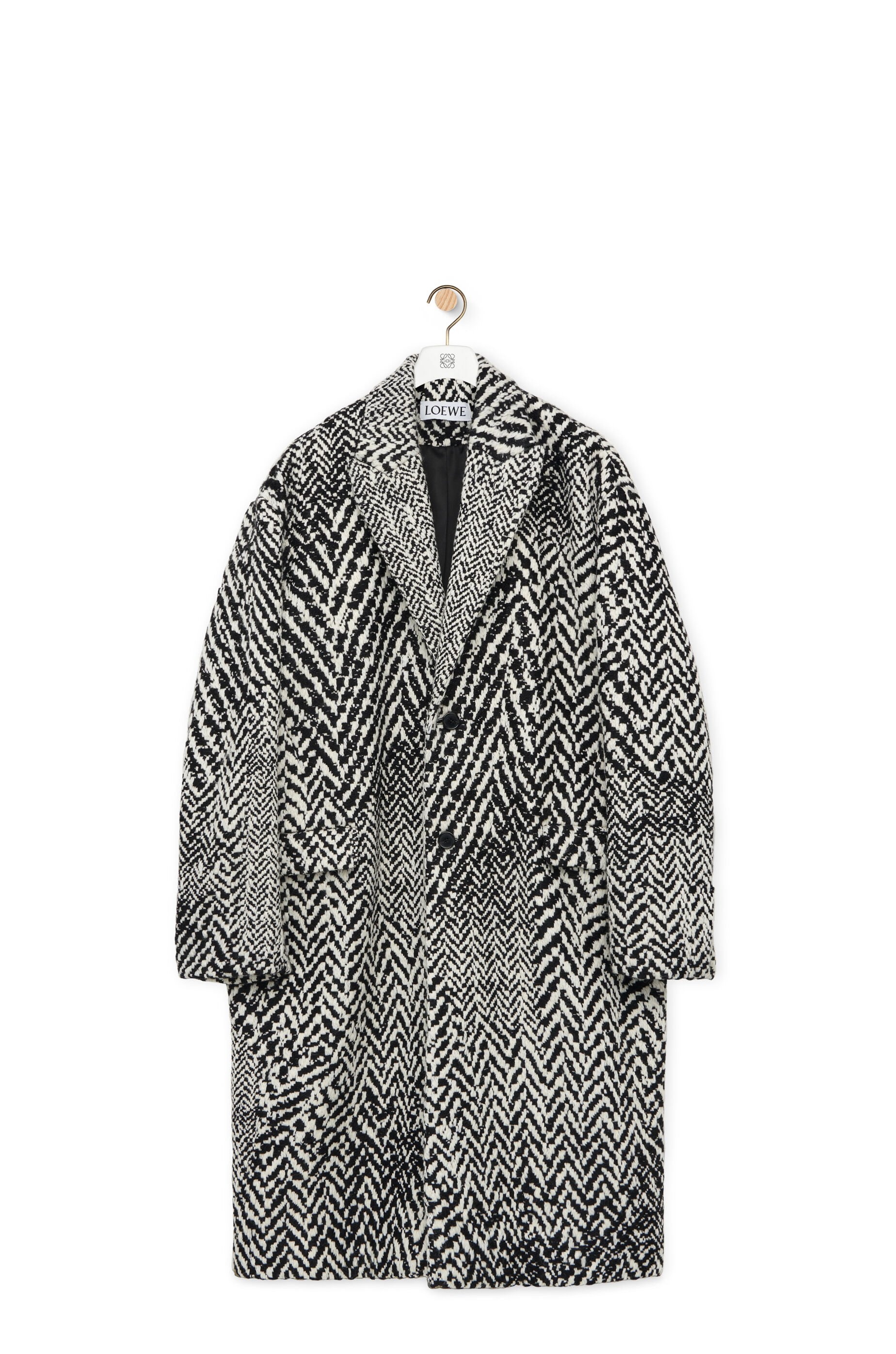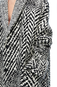 Coat crafted in medium-weight distorted herringbone wool jacquard. - Relaxed fit - Long length - Placed chevron pattern - Single breasted - Peak lapels - Stitched cuffs - Button front fastening - Flap pockets - Fully lined Details - Colour: Black/White - Main material: Wool/Polyamide - Weight: 1.7 kg - Model ID: HSM1Y01W09 - Made in: Italy