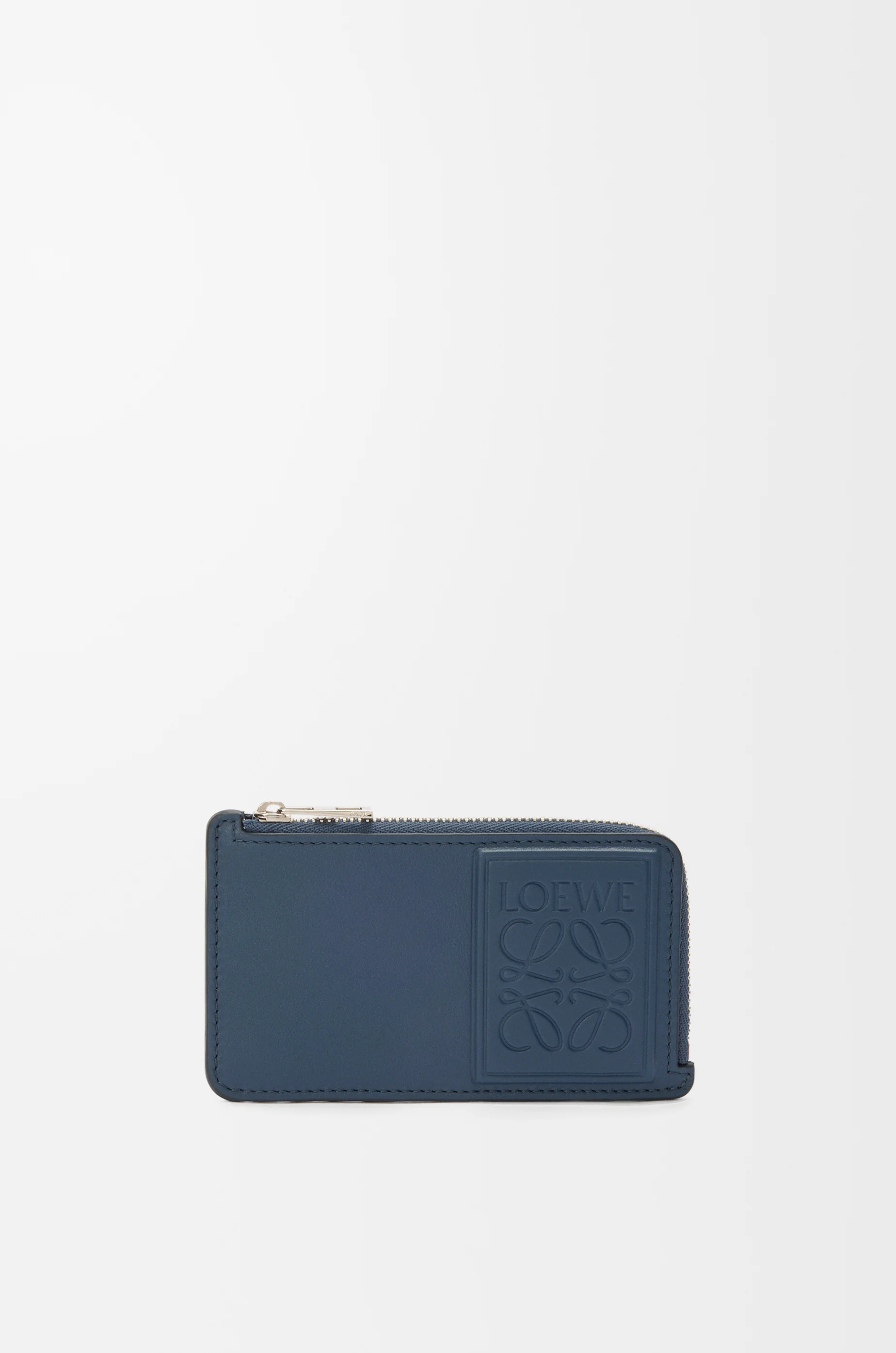 Coin cardholder in satin calfskin. - Four card slots - One zipped coin compartment with calfskin pull - Calfskin lining - Debossed LOEWE Anagram patch Colour: Indigo Dye Metallic colour: Palladium Main material: Satin Calf Weight: 0.04 kg Height: 7.5 cm Width: 13 cm Depth: 1 cm Made in: Spain