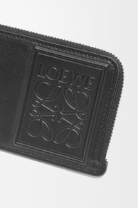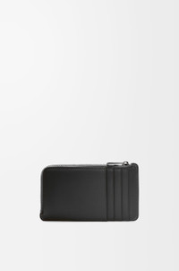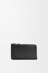 Coin cardholder in satin calfskin with a debossed LOEWE Anagram patch. - Four card slots - Zipped coin compartment - Calfskin lining Details - Colour: Black - Metallic colour: Palladium - Main material: Satin Calf - Weight: 0.07 kg - Height (cm): 7.5 - Width (cm): 13 - Depth (cm): 1 - Height (inch): 3 - Width (inch): 5.1 - Depth (inch): 0.4 - Model ID: C565Z40X01 - CIL: 0010823607 - Made in: Spain