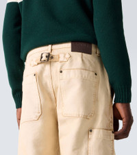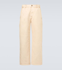 Founded in 1846 as a leathermaking company, Loewe maintains a commitment to the art and craft of the utmost quality. Made from cotton, these pants come in a straight silhouette and are complete with a leather logo patch at the back. Product Details - Material: 100% cotton - Care instructions: dry clean - Made in Italy - Designer color name: Beige - Item color: beige - Pocket lining: 100% cotton - Details: 100% calf leather - Contains non-textile parts of animal origin - Belt loops - Pockets: slant pockets, back pockets - Closure: button fastening - Item number: P01123334 Size & Fit - True to size - Non-stretchy fabric - Straight leg - Height of model is 192cm-75.5" and wears a size 50
