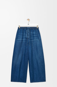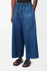 Trousers in lightweight washed cotton denim. - Relaxed fit, ankle length - Mid waist, wide leg - Elasticated waist with drawstring - Slash pockets - Anagram crafty embroidery placed on the rear patch pocket Colour: Light Blue Main material: Cotton Weight: 0.5 kg Made in: Italy