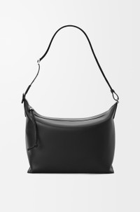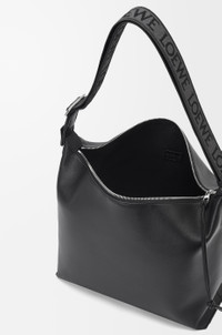 The Cubi Crossbody is a capacious and soft bag that adapts easily to the body. This version is crafted in supple smooth calfskin with a LOEWE jacquard strap. - Crossbody or shoulder carry - Adjustable shoulder strap - Zip closure with calfskin zip pull - Internal slip pocket - Suitable for a 13 inch laptop - Herringbone cotton canvas lining - Embossed Anagram Details - Colour: Black - Metallic colour: Palladium - Main material: Supple Smooth Calf/Jacquard - Strap length: 70 - 125 cm - Weight: 0.54 kg - Height (cm): 30 - Width (cm): 44 - Depth (cm): 18 - Height (inch): 11.8 - Width (inch): 17.3 - Depth (inch): 7.1 - Model ID: B906K70X13 - CIL: 0010967578 - Made in: Portugal