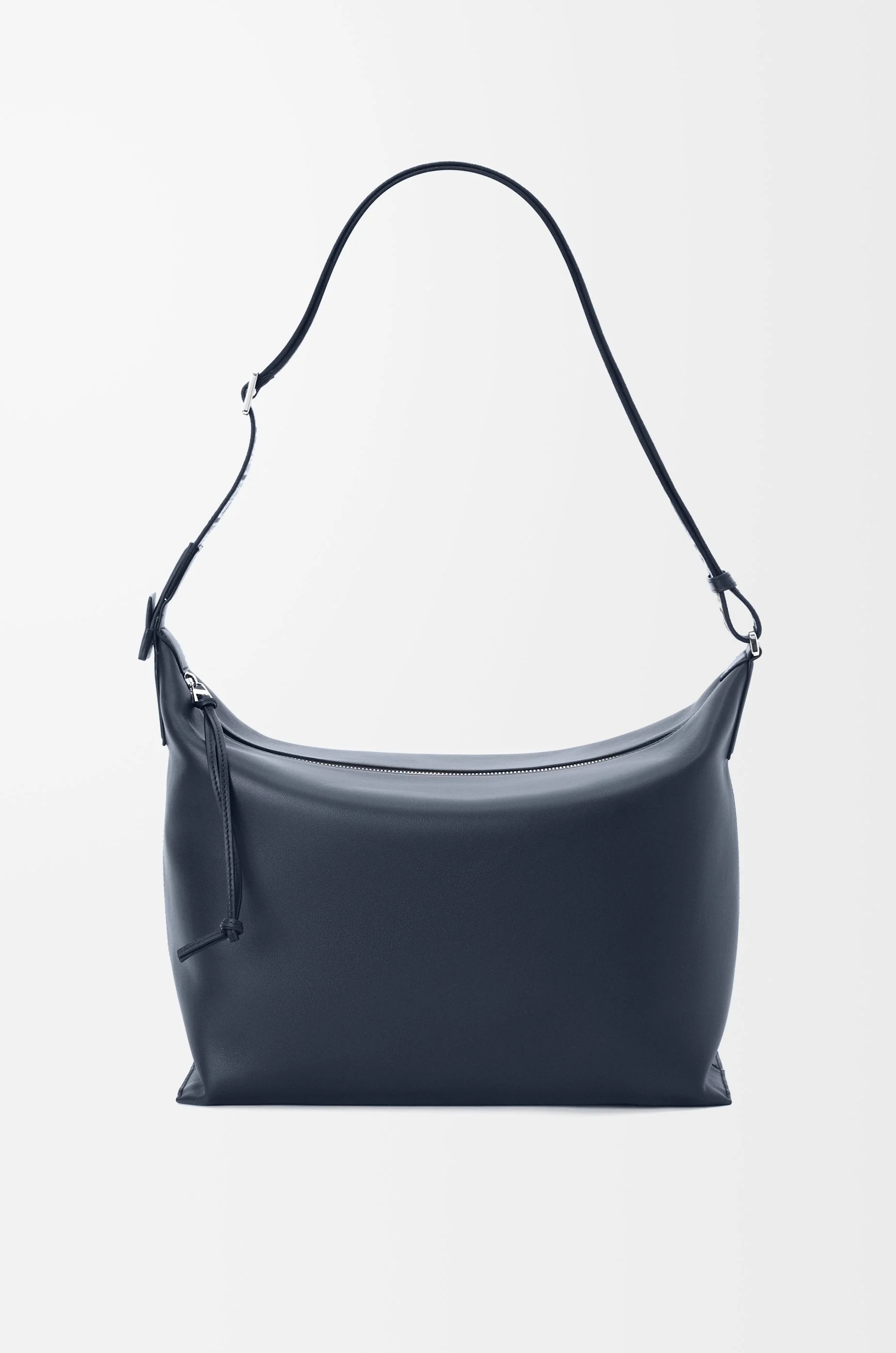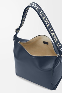 The Cubi Crossbody is a capacious and soft bag that adapts easily to the body. This version is crafted in supple smooth calfskin with a LOEWE jacquard strap. - Crossbody or shoulder carry - Adjustable shoulder strap - Zip closure with calfskin zip pull - Internal slip pocket - Suitable for a 13 inch laptop - Herringbone cotton canvas lining - Embossed Anagram Details - Colour: Deep Navy - Metallic colour: Palladium - Main material: Supple Smooth Calf/Jacquard - Strap length: 70 - 125 cm - Handle drop: 52 - 92 cm - Weight: 0.54 kg - Height (cm): 30 - Width (cm): 44 - Depth (cm): 18 - Height (inch): 11.8 - Width (inch): 17.3 - Depth (inch): 7.1 - Model ID: B906K70X01 - CIL: 0010744480 - Made in: Spain