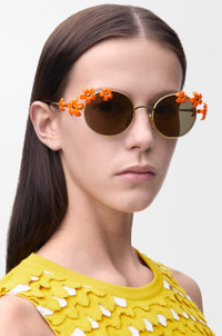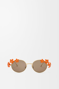 Oval-shaped sunglasses in a light metal construction with daisy embellishments. - Universal fit - UVA/UVB protection - Engraved LOEWE Colour: Orange Main material: Metal Weight: 0.035 kg Made in: Italy