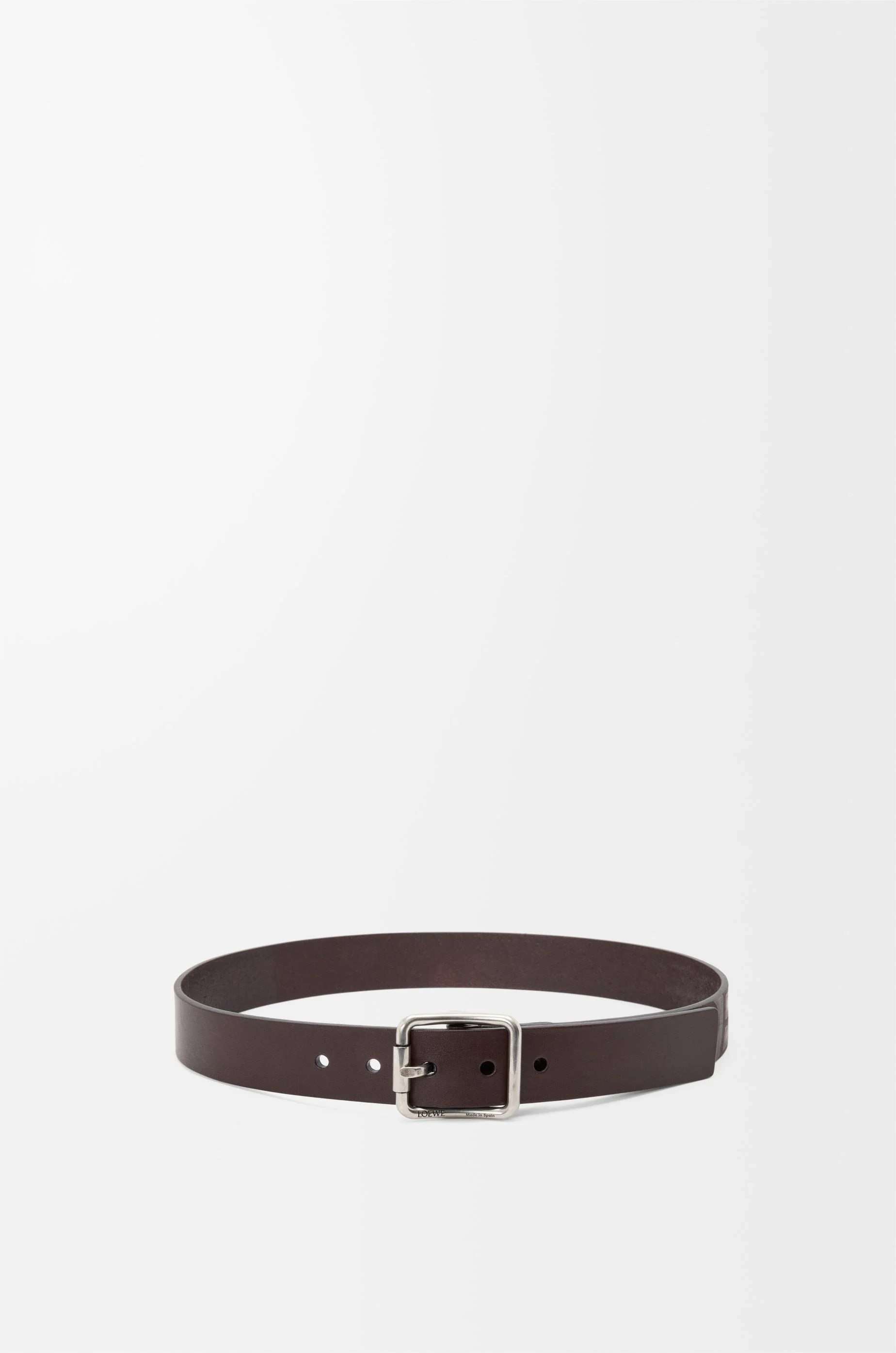 Belt in vegetable-tanned calfskin featuring a lasered LOEWE signature. Due to its treatment, this leather will age naturally and develop a unique patina over time. - Double Roller Curve prong buckle - 3.5cm wide - Five holes regulation - Engraved LOEWE Details - Colour : Dark Cigar/Vintage Palladium - Metallic colour : Palladium - Main material : Calf - Weight : 0.16 kg - Depth (cm) : 3.5 - Depth (inch) : 1.4 - Model ID : E619Z20X79 - Made in : Spain