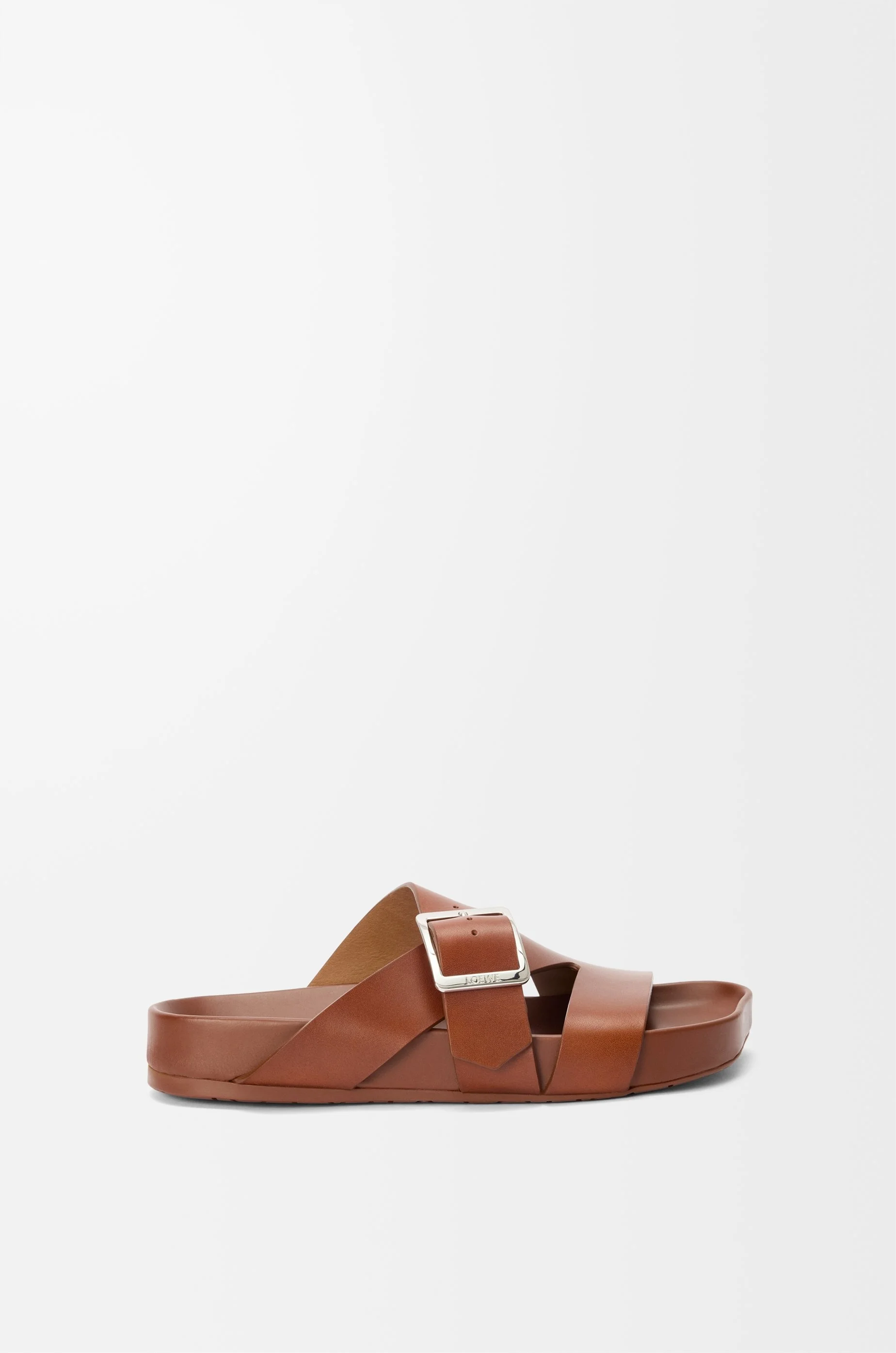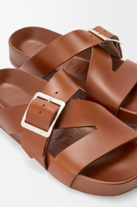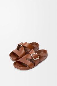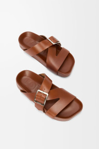 Slide in vegetable-tanned calfskin featuring the signature LOEWE square buckle and a moulded ergonomic fussbett in leather. - 25mm heel - Engraved LOEWE - Anagram embossed rubber outsole Colour: Rust Main material: Vegetal Calfskin Weight: 0.9 kg Made in: Italy