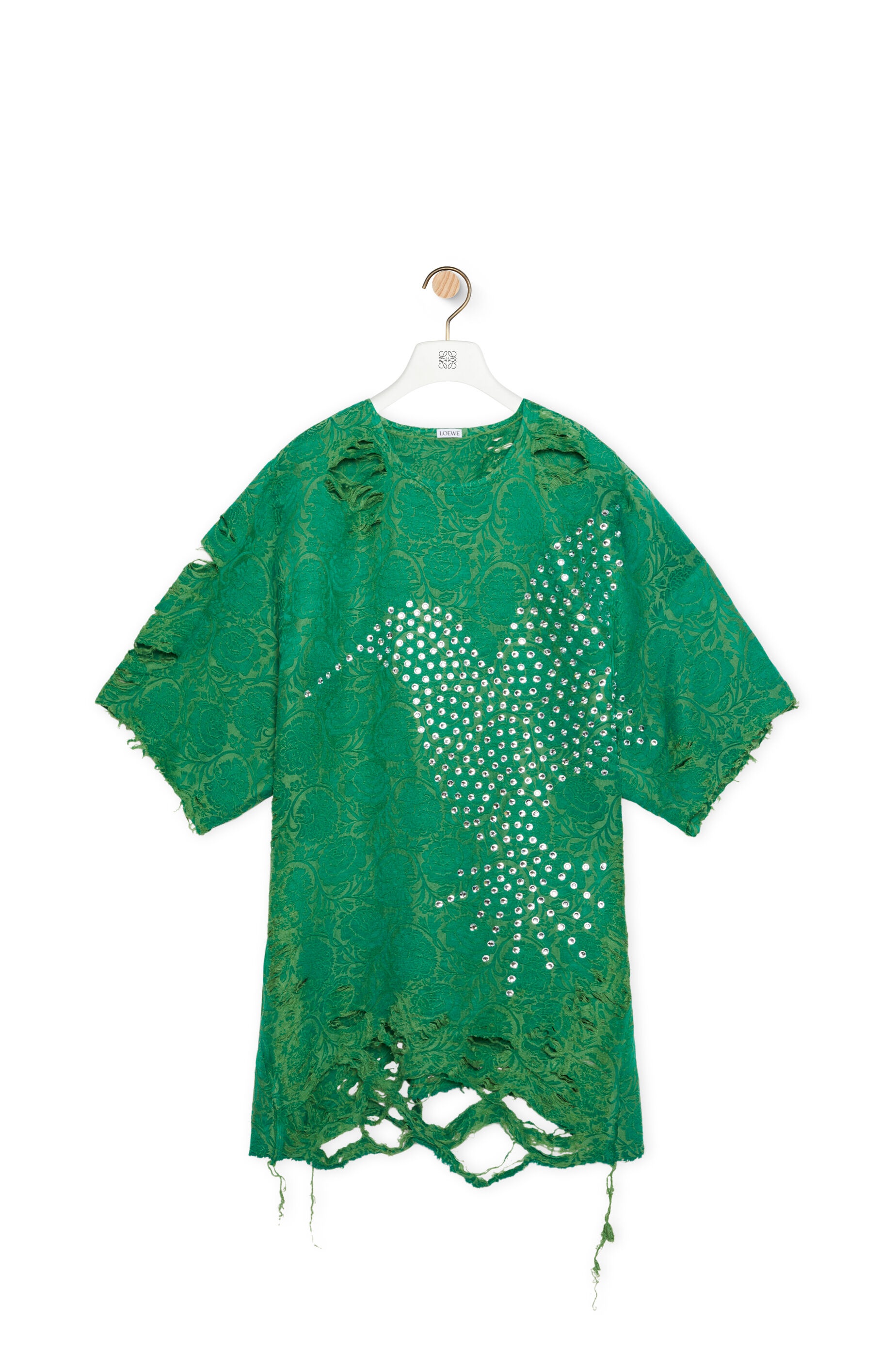 Embelisshed top crafted in lightweight linen and silk jacquard. Each piece is printed and dyed on finished garment, then distressed by hand to create visual texture. - Oversized fit - Regular length - Strass-embellished bird motif - Round neck - Short sleeves Details - Colour: Green - Main material: Linen/Silk - Weight: 1.0 kg - Model ID: H526Y07X02 - CIL: 0011033339 - Made in: Italy