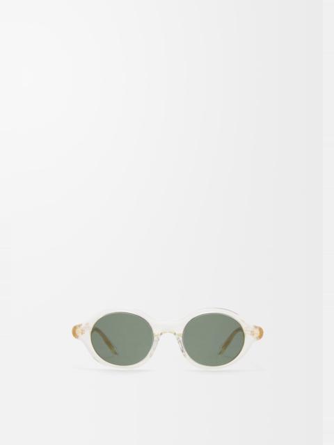 Oval-shaped sunglasses in a slim acetate construction. - Universal fit - UVA/UVB protection - Gold-finish metal LOEWE Details - Colour : Khaki Green - Main material : Acetate - Weight : 0.032 kg - Lens size (cm) : 4.8 - Lens size (inches) : 1.9 - Bridge size (cm) : 2.1 - Bridge size (inches) : 0.8 - Temple size (cm) : 14 - Temple size (inches) : 5.5 - Model ID : G735270X15 - CIL : - 0011199460 - Made in : Italy