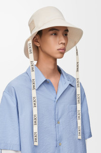 Fisherman hat in canvas with LOEWE herringbone cotton canvas straps. - Herringbone cotton canvas lining - Embossed LOEWE classic calfskin patch Details - Colour: Soft White - Main material: Canvas - Weight: 0.18 kg - Model ID: K820HF1X67 - Made in: Italy