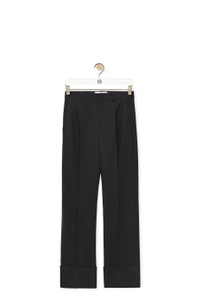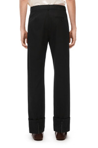 Fisherman turn-up trousers crafted in medium-weight cotton gabardine. - Regular fit - Regular length - Mid waist - Straight leg - Turn-up cuffs with LOEWE embossed leather piping - Belt loops - Concealed zip fastening - Slash pockets - Rear welt pocket with LOEWE engraved horn button - Pleats detailings at the front and back - Anagram embossed leather tab placed at the back Details - Colour: Black - Main material: Cotton - Weight: 0.5 kg - Model ID: H526Y04WCC - Made in: Italy