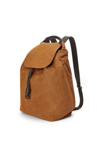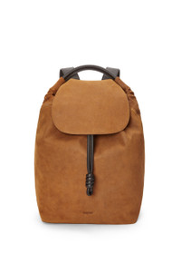 The Flamenco backpack is a streamlined and functional everyday design with a nod to the original bag's signature coiled knot detail. It can fit a laptop and a number of essentials thanks to its spacious main compartment, complemented by external and internal pockets. This version is crafted in pressed suede with leather trimmings. - Back, shoulder or top handle carry. - Adjustable leather and LOEWE webbing shoulder straps - Drawstring closure - External zip pocket - Internal slip pocket - Herringbone cotton canvas lining Details - Colour : Cognac - Metallic colour : Palladium - Main material : Suede - Strap length : 46 - 66 cm - Handle drop : 7 cm - Weight : 1.06 kg - Height (cm) : 40 - Width (cm) : 36 - Depth (cm) : 16 - Height (inch) : 15.7 - Width (inch) : 14.2 - Depth (inch) : 6.3 - Model ID : B411FLKX02 - CIL : - 0011083391 - Made in : Spain