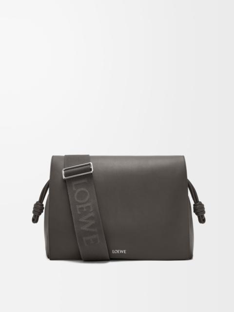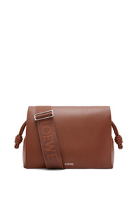 Reimagining the iconic Flamenco as a functional crossbody design, the satchel features the range's signature drawstring pulls and coiled knots. This version is crafted in shiny supple calfskin with suede on the inside. - Crossbody, shoulder or hand carry - Adjustable and detachable LOEWE webbing strap - Internal calfskin zipped pocket and D-ring - Silver embossed LOEWE Details - Colour: Brownie - Metallic colour: Palladium - Main material: Shiny Supple Calf - Strap length: 99 - 161 cm - Weight: 0.88 kg - Height (cm): 24 - Width (cm): 34 - Depth (cm): 12 - Height (inch): 9.4 - Width (inch): 13.4 - Depth (inch): 4.7 - Model ID: B411FSAX04 - CIL: 0011083102 - Made in: Spain