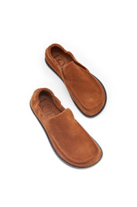 Loafer crafted in suede featuring a deconstructed upper, an anatomic toe shape and elasticated back. Particularly light and flexible leather outsole. - Unlined - Padded insole - Nubuck outsole Details - Colour: Chocolate - Main material: Split Calfskin - Heel height: 1 - Weight: 0.5 kg - Model ID: M816290X26 - Made in: Italy
