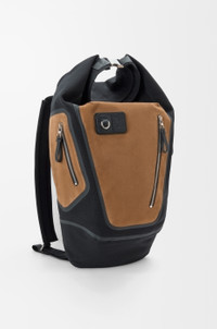 The Flex roll-top backpack is a multifunctional and versatile design defined by a trapeze silhouette in lightweight, water-resistant materials elevated by refined technical details. It is crafted in cotton canvas and suede. - Back, shoulder or top handle carry - Adjustable padded LOEWE webbing shoulder straps, leather top handle - Roll-top closure with snap buckles - Multiple compartments - One front zipped pocket, two side zipped pockets, one internal laptop pocket - Water-resistant nylon lining - Embossed Anagram with D-ring Colour: Black/Dark Gold Metallic colour: Palladium Main material: Canvas/Suede Strap length: 50 - 86 cm Handle drop: 8 cm Weight: 1.2835 kg Height: 60 cm Width: 42 cm Depth: 21 cm Made in: Portugal