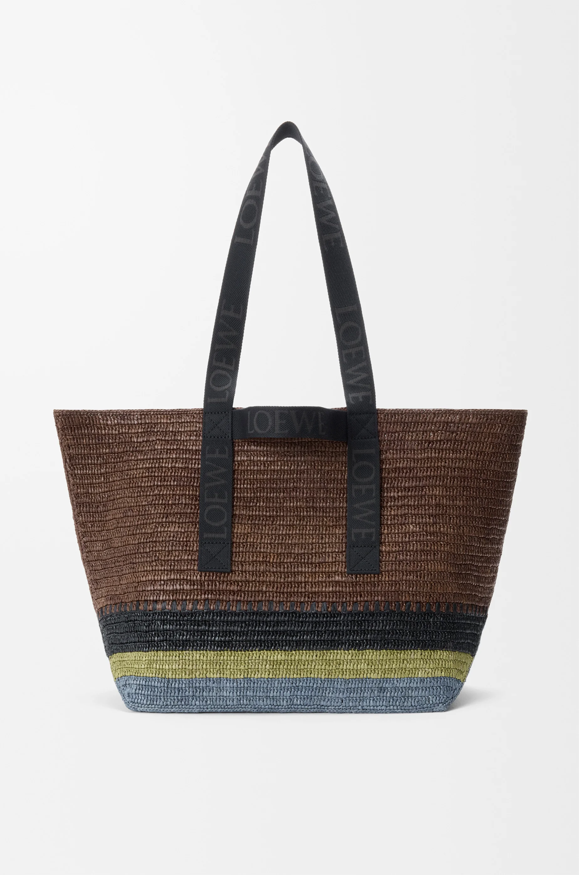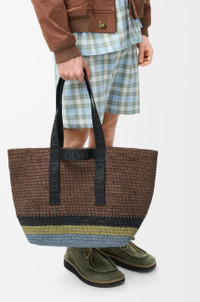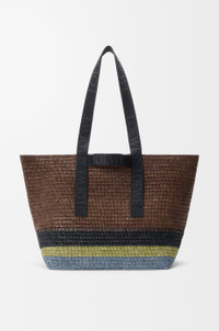 The Fold Shopper is a versatile, lightweight bag with branded double handles. It can be folded flat at the base, making it ideal for travel. It is made in Spain using raffia leaves cultivated and handwoven by artisans in Madagascar. - Shoulder or top handle carry - LOEWE webbing handles and trims - One internal zipped pocket Colour: Brown/Multicolor Main material: Raffia Handle drop: 7 - 29 cm Weight: 0.78 kg Height: 32 cm Width: 50 cm Depth: 19 cm Made in: Spain