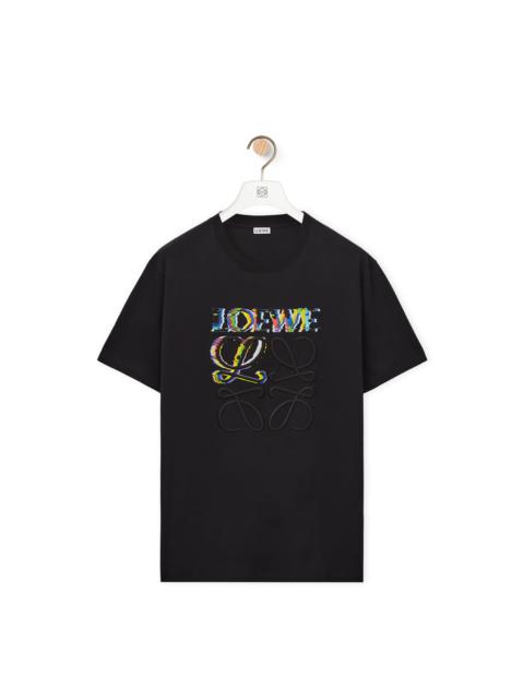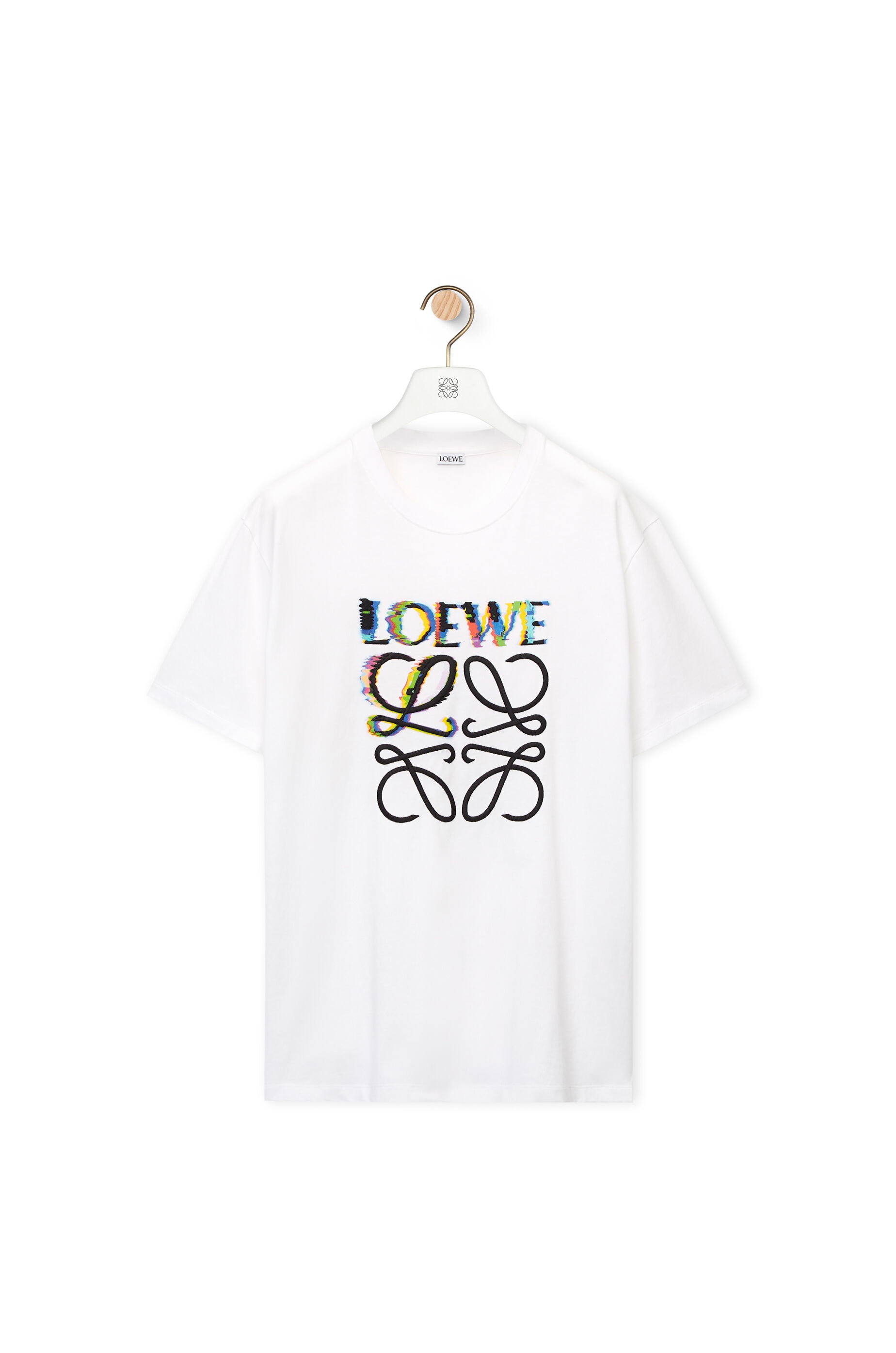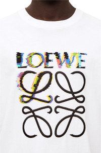 Crew neck T-shirt in lightweight cotton jersey with a multicolour LOEWE Anagram glitch effect embroidery and print on the front. - Relaxed fit Details - Colour: White - Main material: Cotton - Weight: 0.2 kg - Model ID: H526Y22J61 - Made in: Portugal