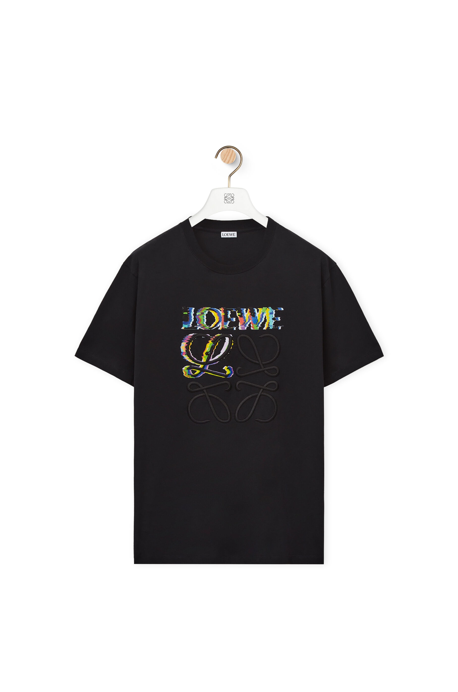Crew neck T-shirt in lightweight cotton jersey with a multicolour LOEWE Anagram glitch effect embroidery and print on the front. - Relaxed fit Details - Colour: Black - Main material: Cotton - Weight: 0.2 kg - Model ID: H526Y22J61 - Made in: Portugal