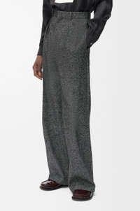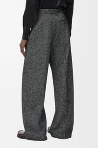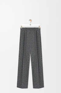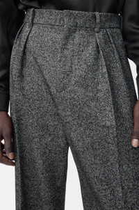 Trousers in medium-weight textured wool blend drill featuring a pleated front and pressed creases at the front and back. - Regular fit, regular length - Mid waist, straight leg - Concealed hook fastening and zip fly - Slash pockets, buttoned rear welt pocket - Partly lined - Anagram embroidery placed at the back Colour: Grey Melange Main material: Wool/Polyamide Weight: 0.8 kg Made in: Italy Materials & care Main Material: 86% wool 14% polyamide