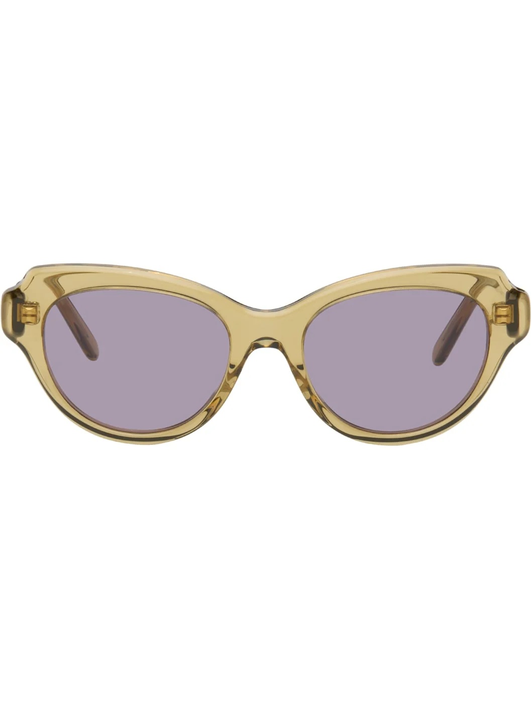 Cat-eye transparent acetate-frame sunglasses. · Purple lenses · 100% UVA/UVB protection, category 3 · Integrated nose pads · Inset logo hardware at temples · Exposed core wires · Includes pouch · Size: 53.19 140 Supplier color: Shiny dark green/Violet Acetate. Made in Italy 261677M134009