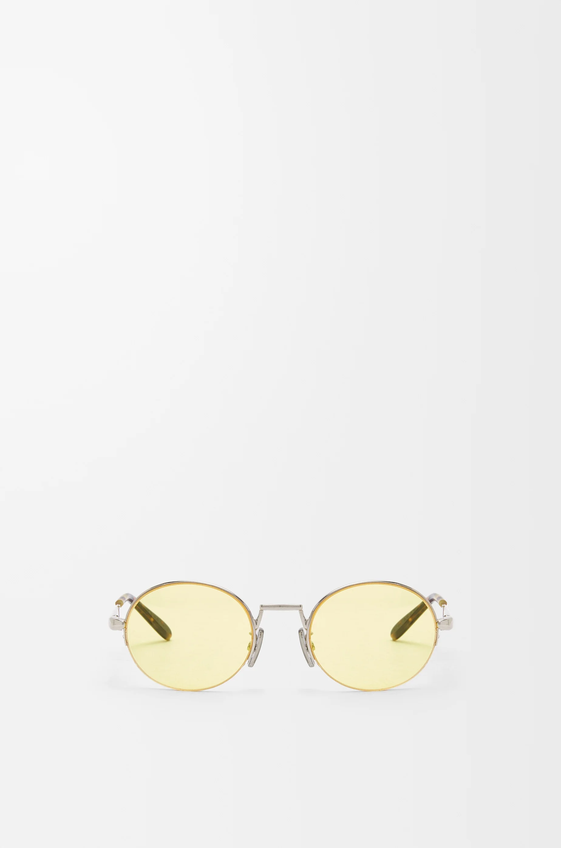 Oval sunglasses in metal with an engraved LOEWE on the temple and acetate tortoiseshell tips. - Universal fit - 100% UVA/UVB protection Details - Colour : Yellow - Main material : Metal - Weight : 0.03 kg - Lens size (cm) : 4.8 - Lens size (inches) : 1.9 - Bridge size (cm) : 2.1 - Bridge size (inches) : 0.8 - Temple size (cm) : 14 - Temple size (inches) : 5.5 - Model ID : G737270X08 - CIL : - 0011127909 - Made in : Italy