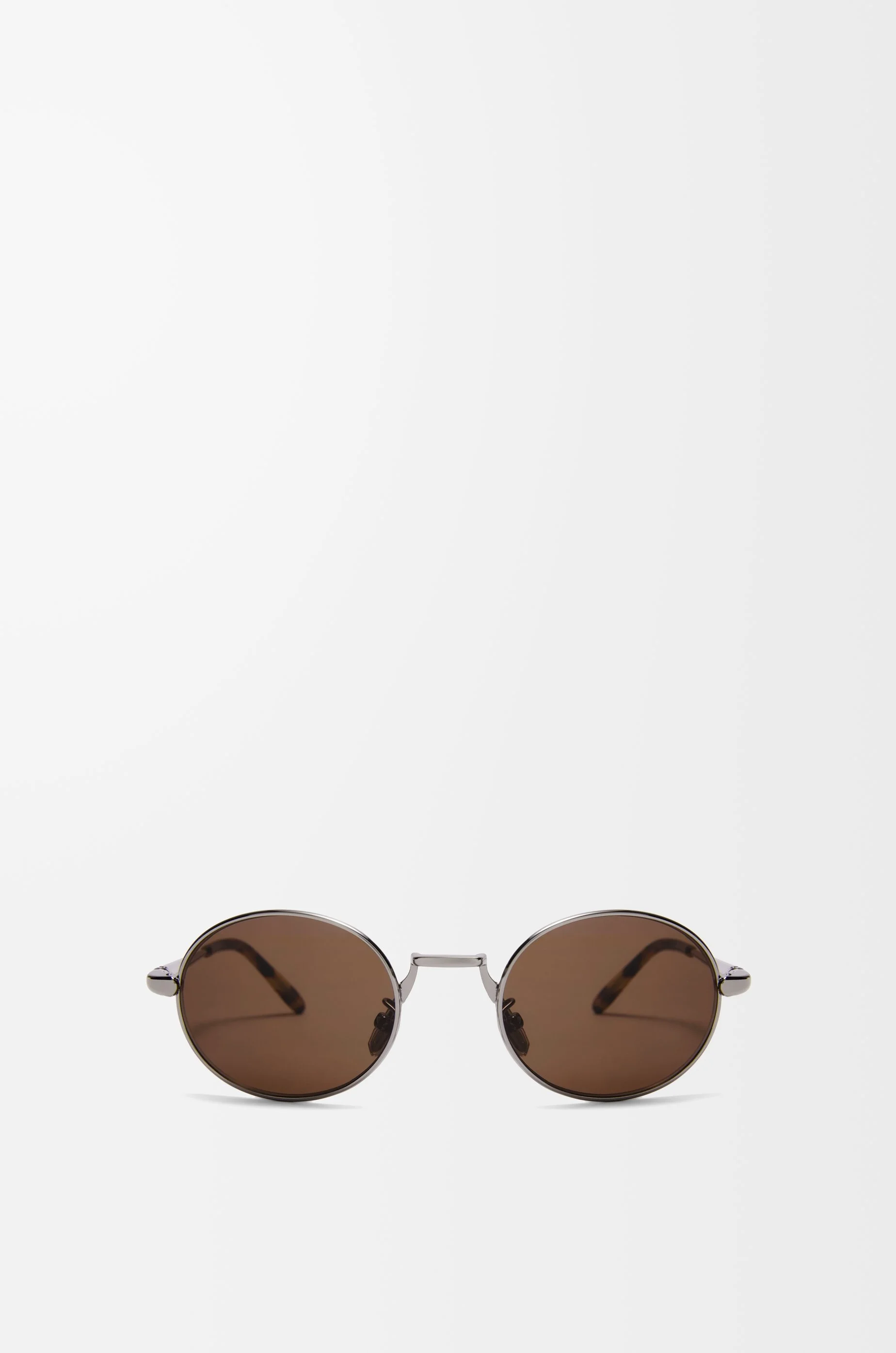 Oval sunglasses in metal with an engraved LOEWE on the temple and acetate tortoiseshell tips. - Universal fit - 100% UVA/UVB protection Details - Colour : Brown Sugar - Main material : Metal - Weight : 0.03 kg - Lens size (cm) : 4.8 - Lens size (inches) : 1.9 - Bridge size (cm) : 2.1 - Bridge size (inches) : 0.8 - Temple size (cm) : 14 - Temple size (inches) : 5.5 - Model ID : G737270X08 - CIL : - 0011127891 - Made in : Italy