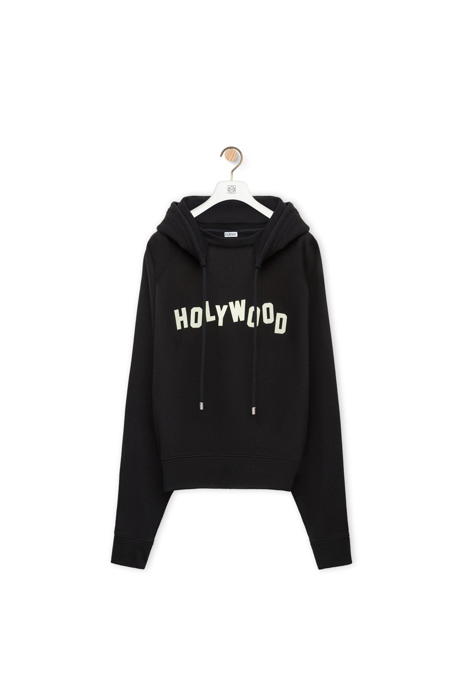 Hoodie in medium-weight mercerised loopback cotton fleece featuring a placed crackle-effect Holywood print at the front. - Relaxed fit, regular length - Ribbed cuffs and hem - Kangaroo pocket - Anagram embroidery placed at the back Details - Colour : Black - Main material : Cotton - Weight : 0.6 kg - Model ID : H526Y25X60 - Made in : Portugal