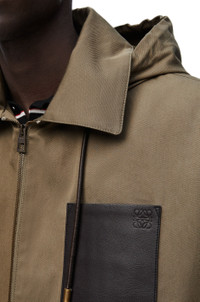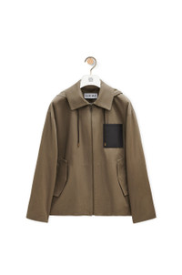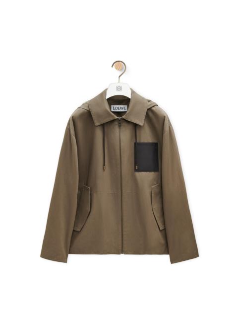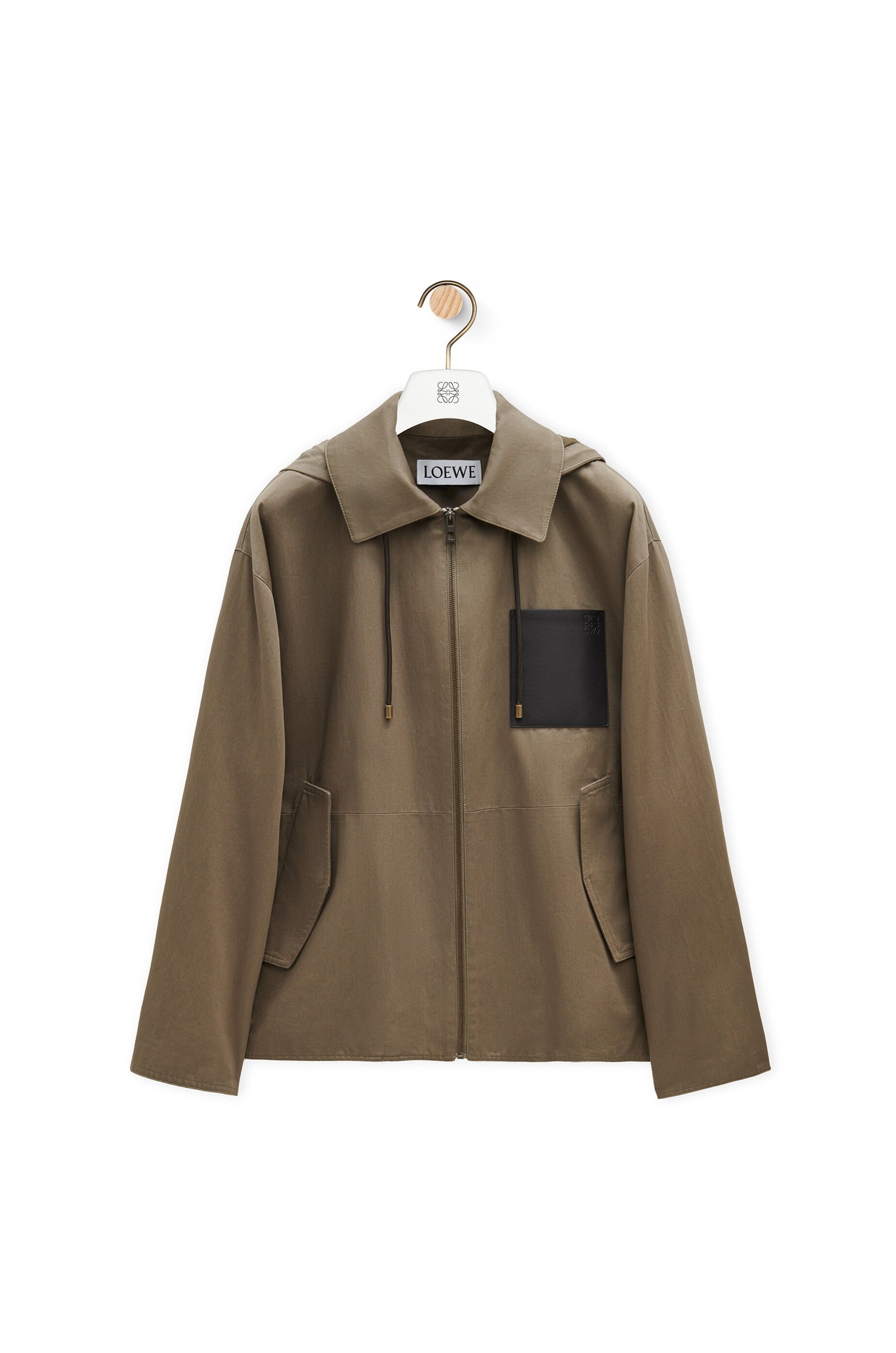 Jacket crafted in lightweight compact cotton. - Relaxed fit - Regular length - Hybrid hooded collar with drawstring - Zip front fastening - Diagonal flap pockets - Fully lined - LOEWE Anagram embroidered inside patch pocket - Anagram embossed leather patch pocket placed on the chest Details - Colour: Khaki Brown - Main material: Cotton - Weight: 0.9 kg - Model ID: H526Y02W94 - Made in: Portugal